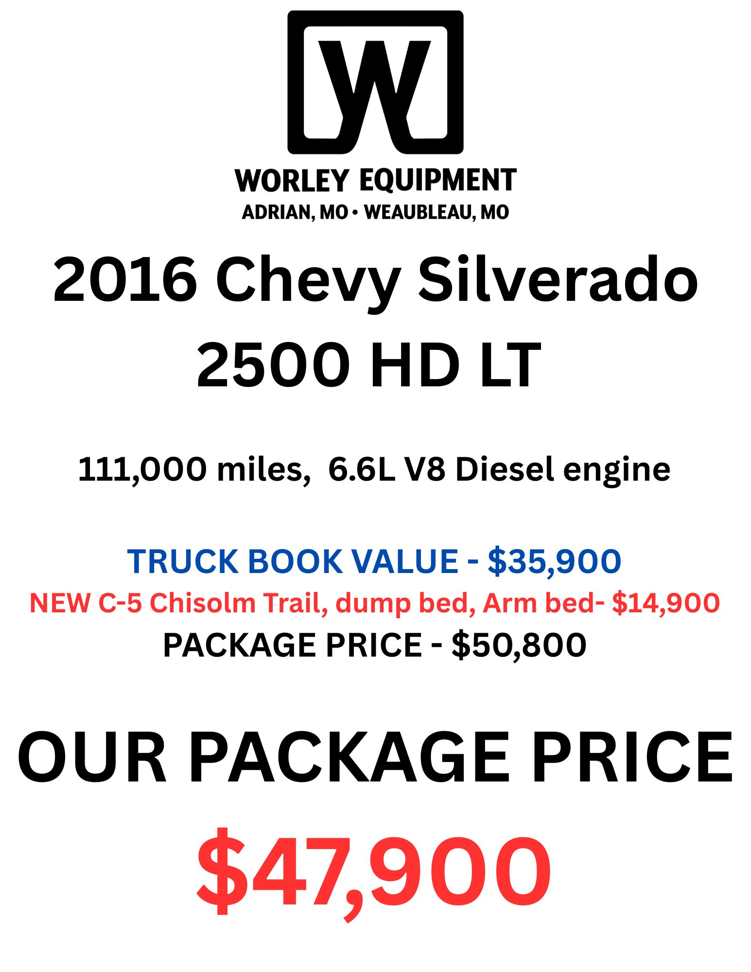 2016 – Chevrolet Silverado 2500HD, LT, 4WD, Crew Cab 6.6 8cyl. Diesel – NEW C-5 Chisolm Trail, dump bed, Arm bed
